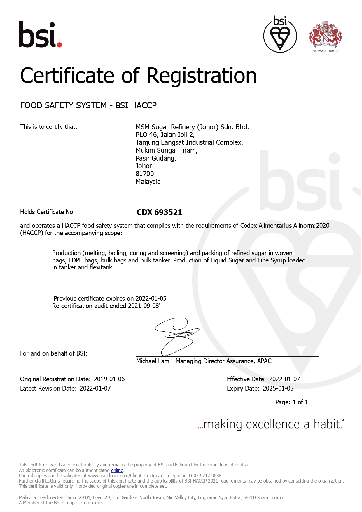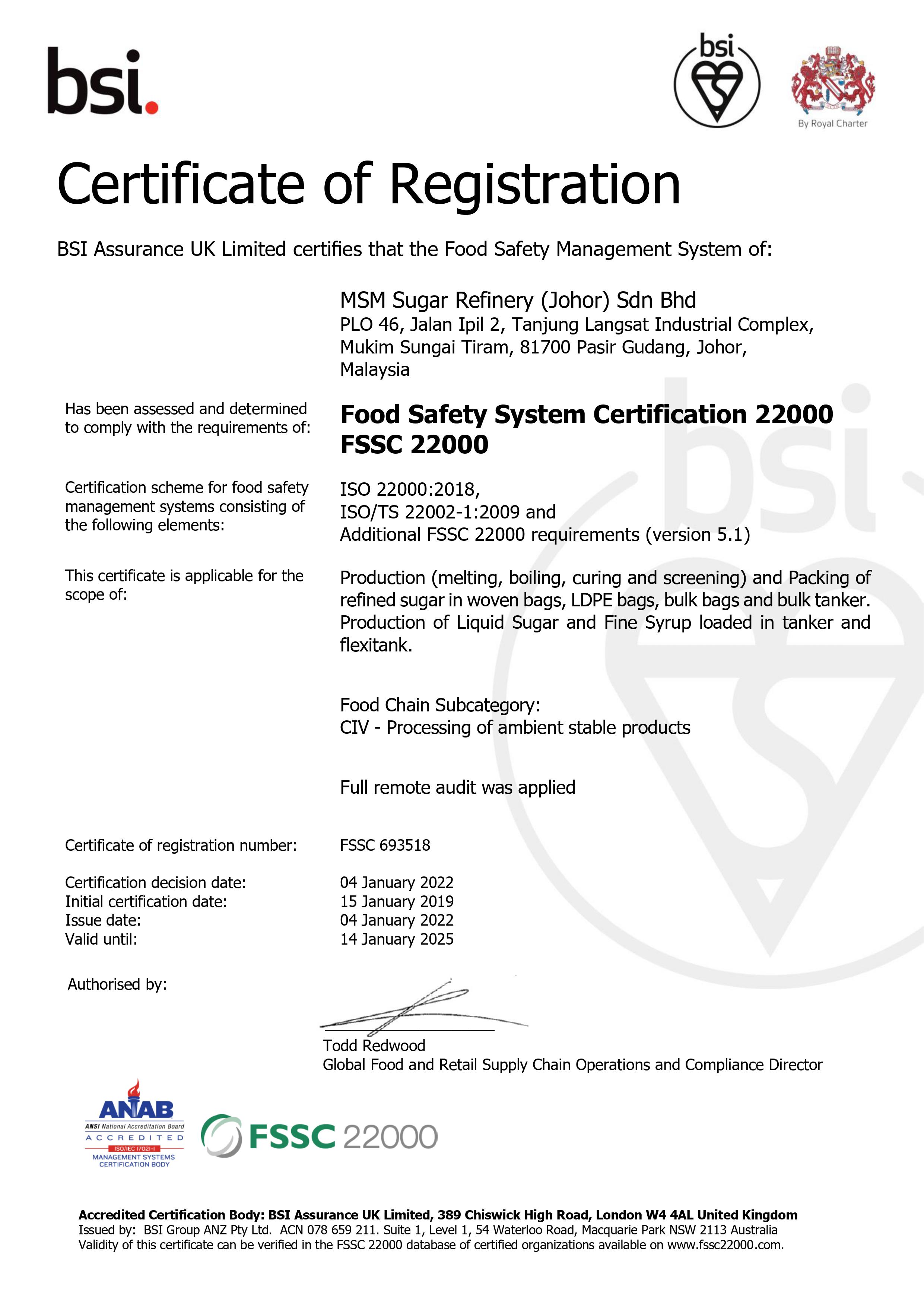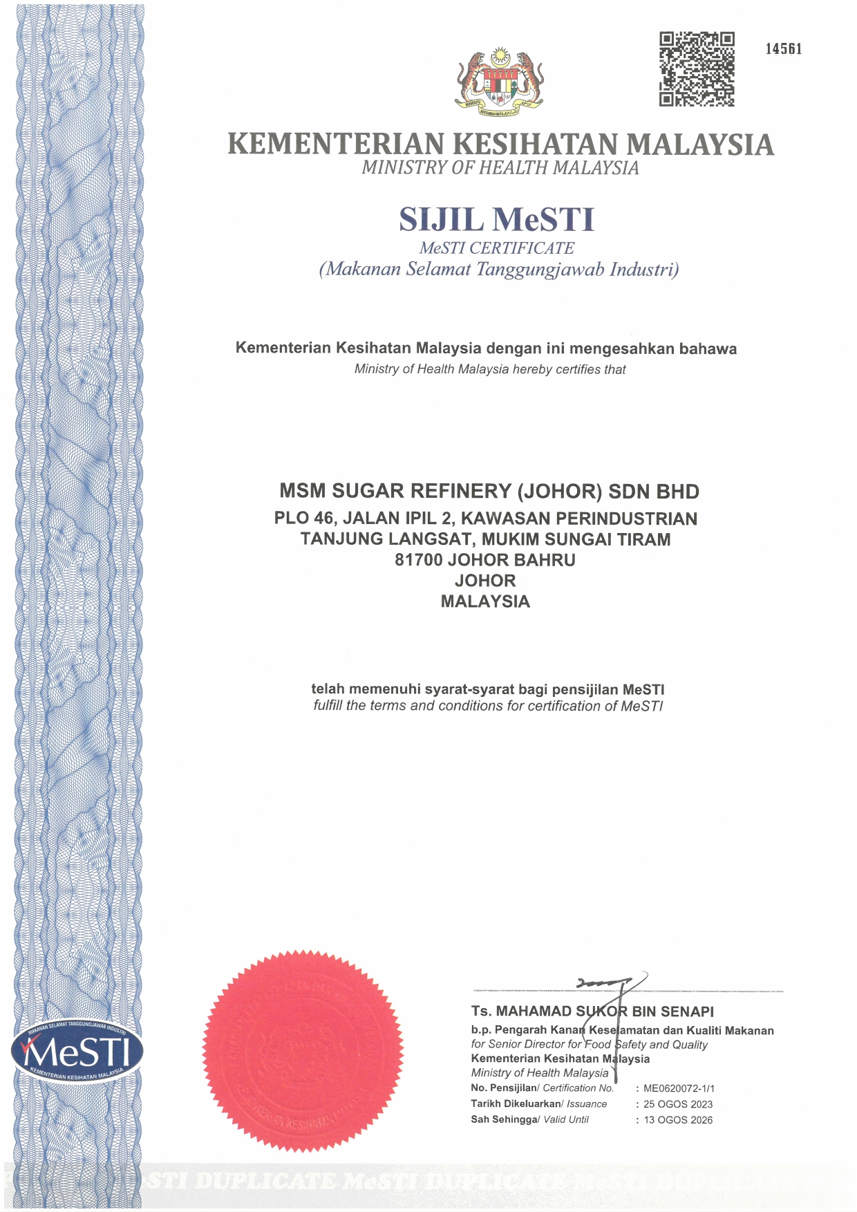 MSM Sugar Refinery (Johor) Sdn. Bhd. (MSM Johor), a subsidiary of MSM Malaysia Holdings Berhad (MSM) operates MSM’s new sugar refinery based in Tanjung Langsat, Johor which is set to be the largest standalone sugar refinery in Malaysia. Erected on a 50.63 acre land plot, the integrated complex is under development for Phase 1 - to build and operate a 3,000 tonnes per day of refined sugar output (RSO) contributing of up to 1 million MT on the Group’s annual production capacity. This is set to be fully commissioned by mid year of 2018. Upon increase in demand, expansion of Phase 2 shall commence by 2025. The combined annual production capacity of Phase 1 and Phase 2 is capable for up to an astounding 2 million MT, strengthening MSM’s position as one of the leading refined sugar producer in the region. With an investment of approximately USD $259 million for the development of Phase 1, this magnifies the Group’s confidence to showcase its ability towards MSM’s 53 years of talented expertise and experience in sugar refining and skilled management. Upon completion and full commissioning of MSM Johor, the total group production capacity will increase of up to 3.25 million MT per annum. One of MSM Johor’s salient point enables capacity building which translates to competitive pricing on end products. This allows MSM to foray into neighbouring countries, further strengthen the Group’s domestic market share and transform Malaysia into a regional hub for high quality refined sugar. Significantly, MSM Johor is seen to be a key growth driver for MSM Group to realize its mission in becoming one of the top 10 global sugar player by 2020.