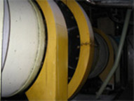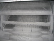 The massecuite undergoes separation into its component crystal and syrup constituents in a centrifuge machine. In the machine the crystals are hosed with hot water to enhance the separation effect.